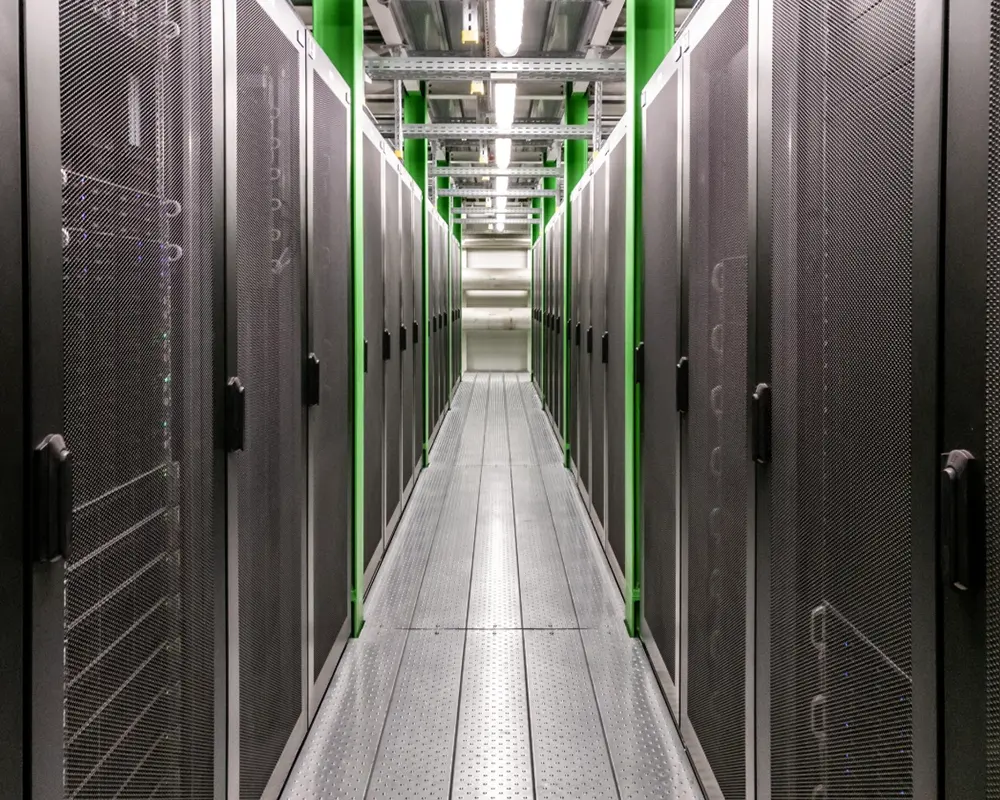 Yapay zekâ uygulamalarına uygun yüksek yoğunluklu rack mimarileri, gelişmiş soğutma sistemleri, düşük PUE değerleri, otomasyon ve yüksek uptime garantisi.